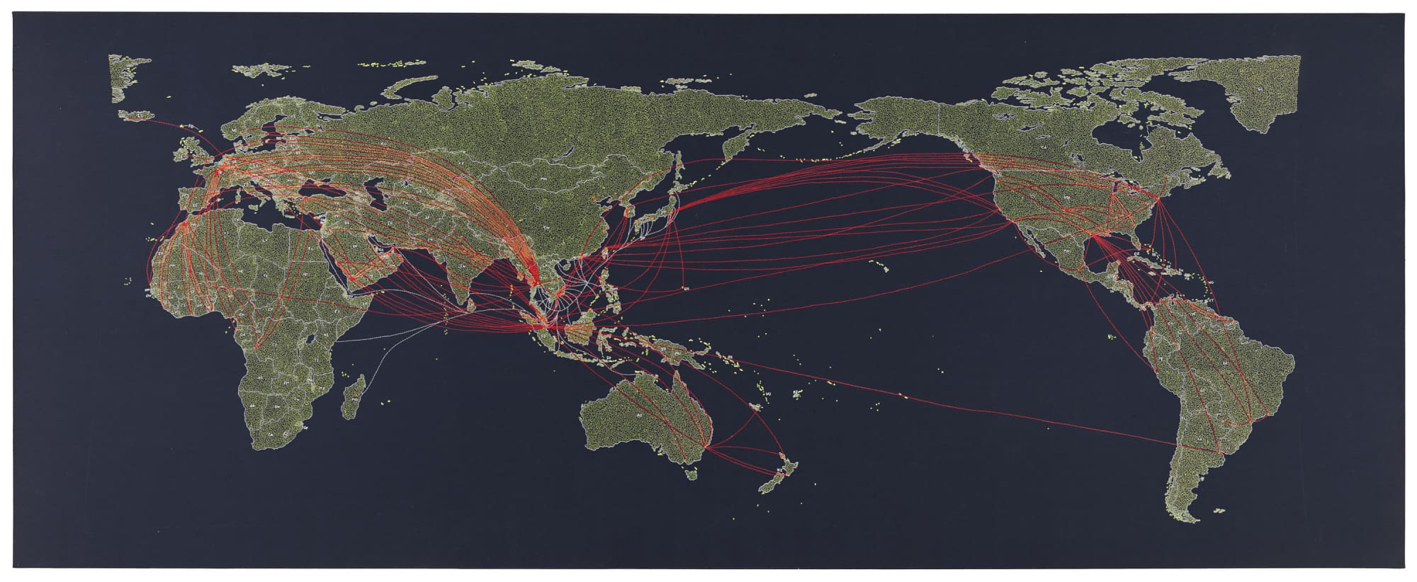 Tiffany Chung (b. 1969 Da Nang, Vietnam) is globally noted for her interdisciplinary practice cultivated through rigorous analysis of the history, culture and topography of different locales. Based on painstaking research, Chung’s work perceptively visualizes the entangled effects of geopolitical change on people and nature. Entwined in threads of landscape archaeology and historical ecology, Chung uses cultural memories and lived experiences to weave interventions into the narrative produced through statecraft. Chung explores the interconnected layers of history that create globalized networks, from the ancient spice trade to present-day patterns of migration to the future impacts of climate change.