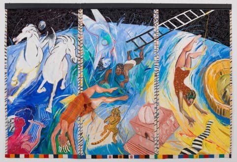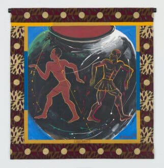 Silk collagraph with monoprint, photo transfer, pastel, and African fabric borders, Paper Dimensions: 42 x 29 1/2 inches (106.7 x 74.9 cm) Framed Dimensions: 51 9/16 x 39 3/16 inches (131 x 99.5 cm)