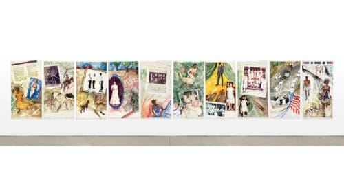 Monoprint with photo transfer, collagraph, and hand coloring, Image Dimensions: 41 3/4 x 29 3/4 inches (106 x 75.6 cm) Framed Dimensions: 51 9/16 x 39 3/16 inches