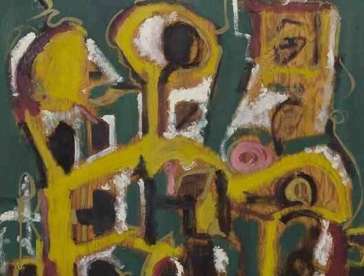 Gentry’s deepening interest in abstraction and constant jazz influence was reflected by overlapping forms, fused by line and color, which are diligently organized by an inner sense of rhythm that both provide structure to and emanate from Gentry’s paintings. Figures, reminiscent of Picasso’s revolutionary abstractions and the so-called “primitive” western African masks that inspired him, organically came together in Gentry’s maze of lines and bright colors. Gentry’s paintings reclaimed the African influences that his white peers and predecessors used in their work, while seeking a universality that connected with viewers on both sides of the Atlantic.